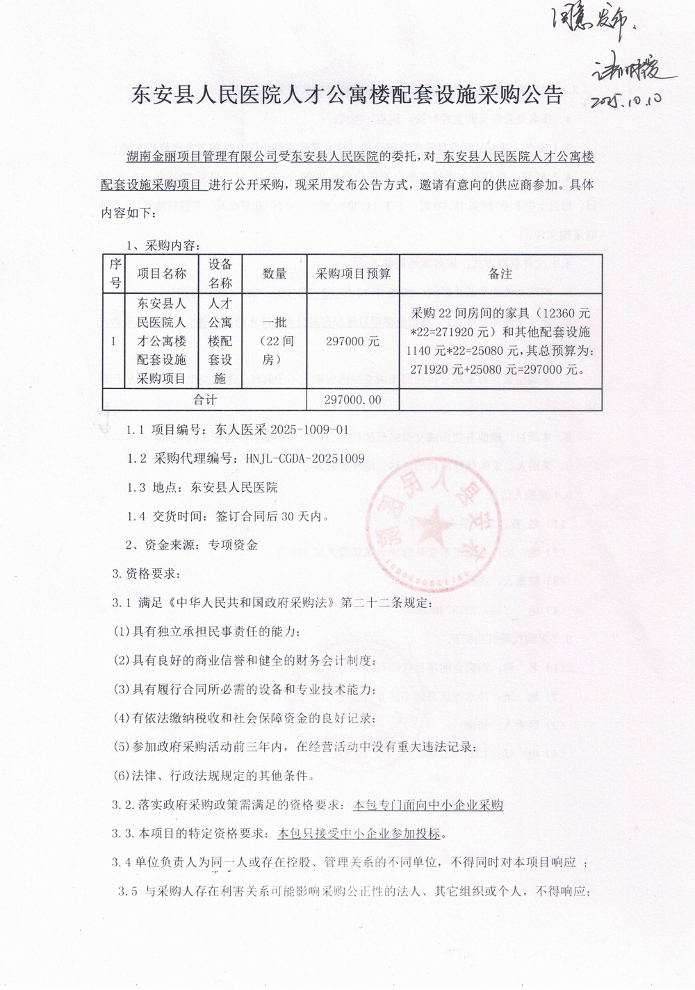 东安县人民医院人才公寓配套设施采购项目成交公告
